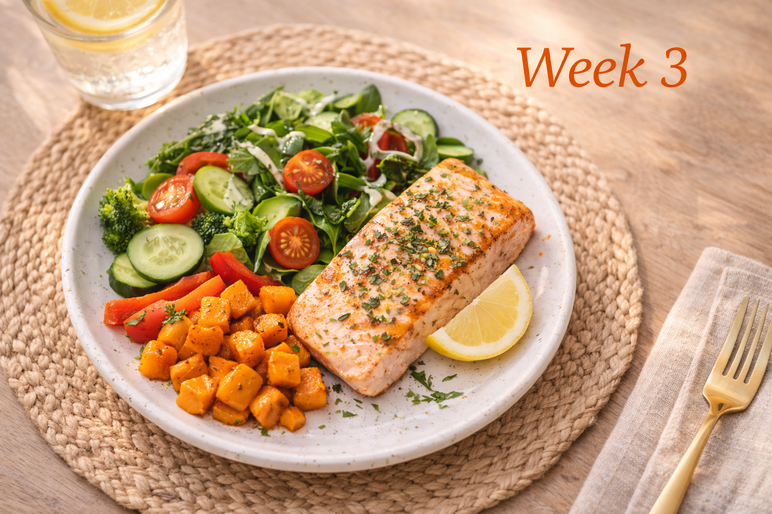 The Ageless Reset is 6 weeks of strength, nutrition, and nervous system support, followed by 12 months of continued guidance to help you keep what you build.
